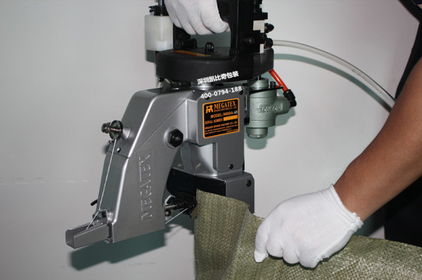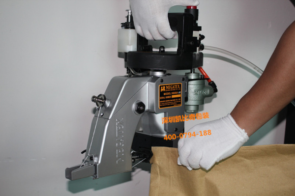 1、这款气动缝包机主要功能(防爆)其次和电动缝包机相比较N600A-AIR缝袋机还有什么优点可以使用户选择,凯比奇包装为你介绍,气动缝包机方便这是点,第二气动缝包机稳定可靠,第三气动式缝包机动力强劲能缝厚袋,硬袋,第四其气动式缝包机很安全就算气管破裂也对员工不会产生伤害。