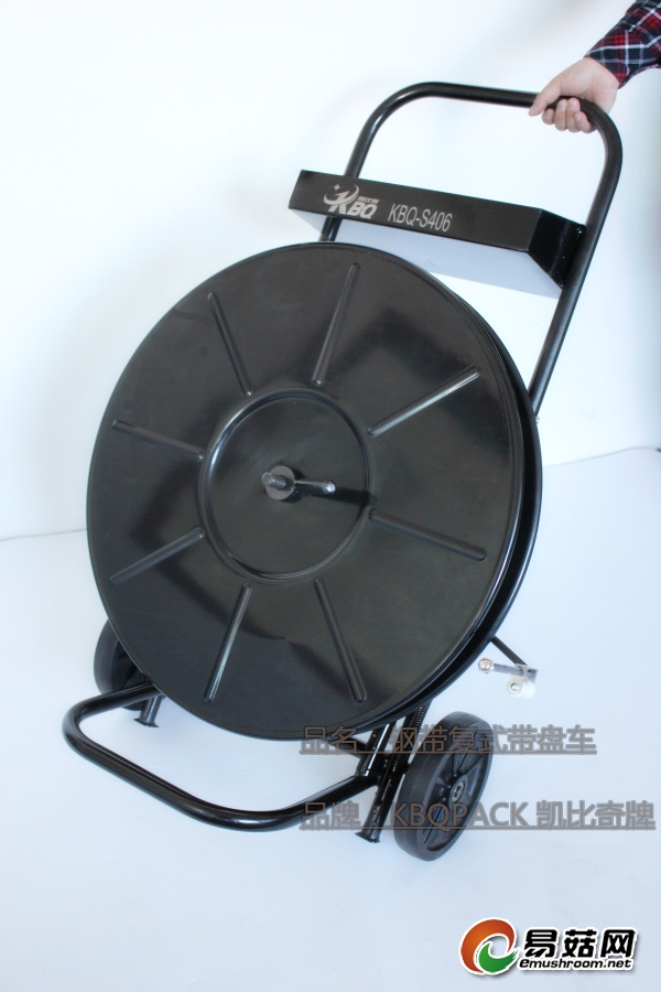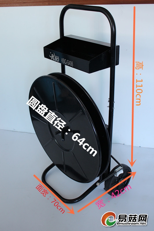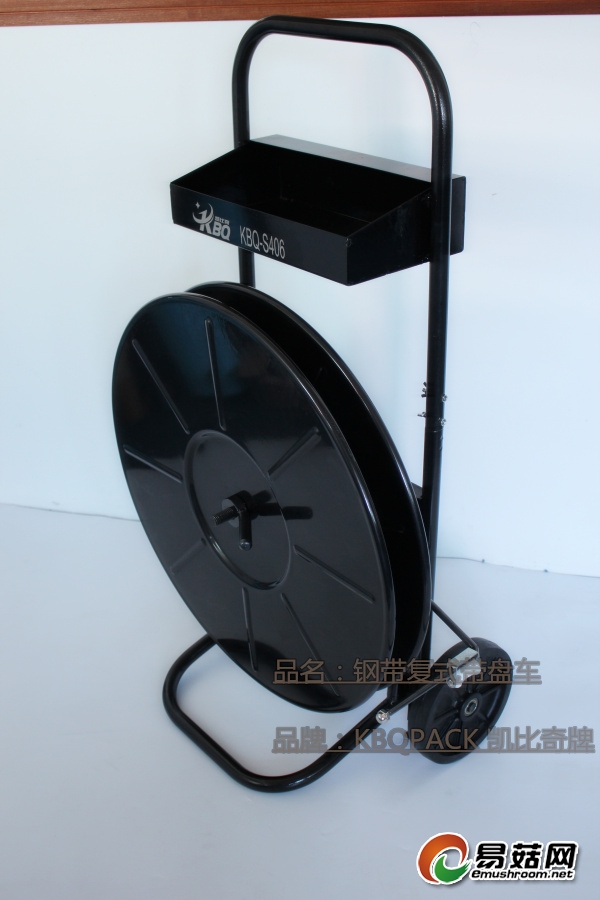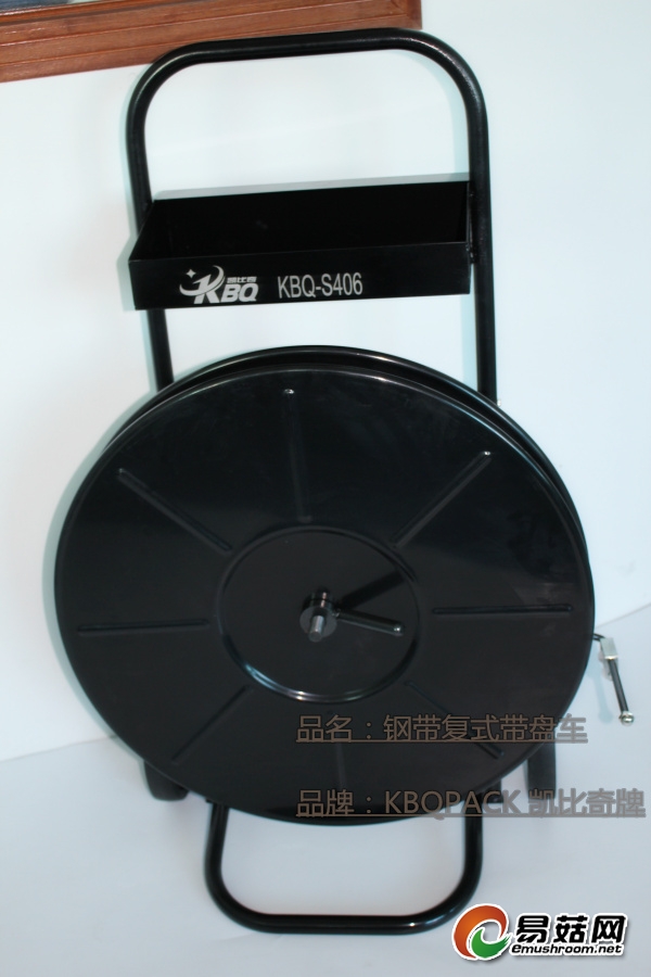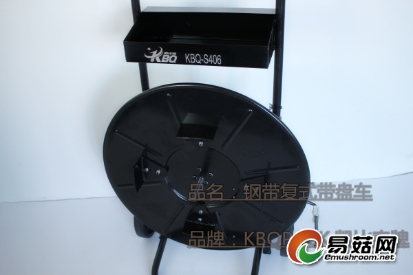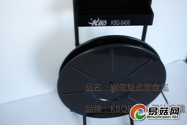 2、KBQ-S406豪华钢带带盘车,外观看起来是一个大圆盘,分内置固定盘,外置活动盘,两个盘子内都焊接有装带 卡位,合计大约每个盘中 4-6个卡位,只需要将铁皮打包带空心位置卡主圆盘固定卡位即可,操作非常简单,卡带很牢固稳定,是工业生产钢带铁皮使用中好帮手。