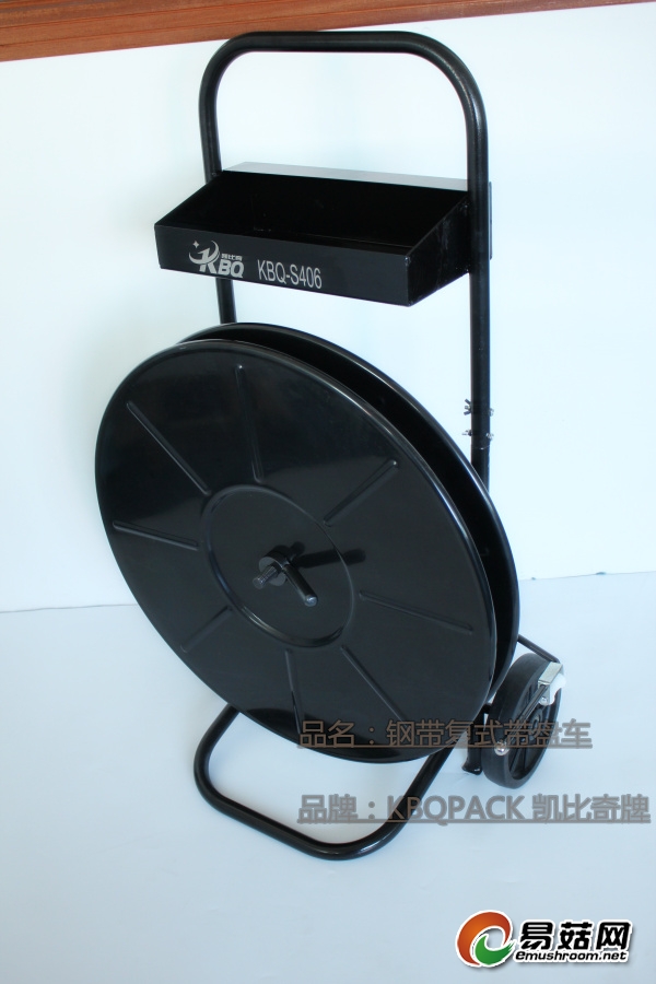 1、普通钢带带盘车是采用的梯形设计,我们简称为 卡槽方式放置铁皮打包带,而我们凯比奇今天介绍这款KBQ-S406豪华带盘车采用的 夹合式置带方式将铁皮打包带卡主,所以需要的打包带直径有所区别。