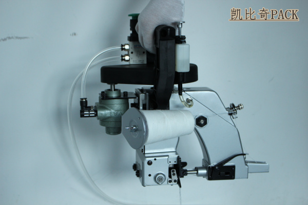 3、 平时使用我们这款气动缝包机,机身油壶记得保持里边随时有机油,使用1-2天就按一下自动加油键,这样有效延续缝包机使用寿命。