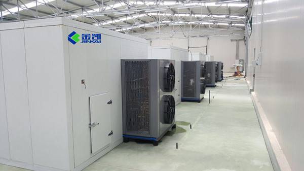 空气能热泵烘干机原理是利用逆卡诺循环原理,吸收环境中热能,经热泵装置提升到为高温热能;冷媒(氟利胺)通过压缩机做功,变成为高温高压气体(温度高达80-115℃),进入室内侧的换热器,利用风机的排放热量,升温烘干房内空气温度。烘干房内的物料通过热风做功的形式使物料中的水分汽化蒸发,蒸发出来的水蒸汽由排湿系统排走而达到烘干物料的目的