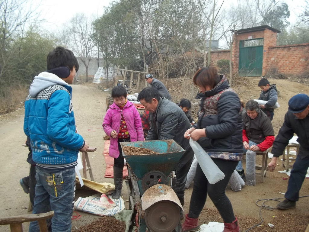 忙忙碌碌的装袋场面。