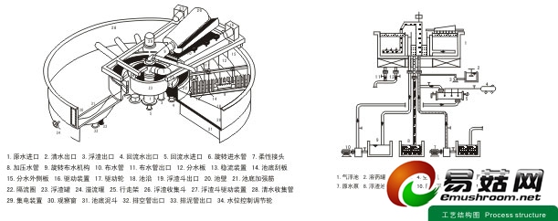 新型高效浅层气浮机,是我公司根据国外最新技术,并结合我国污水处理系统的实际情况,通过近十年的不断试验、使用、改进而成的,新型高效浅层气浮机与传统气浮机相比,改静态进水-动态出水为动态进水-静态出水,使悬浮物(SS)在相对静止的环境中垂直浮在水面上,污水在净化池内仅需2-3min,处理效率极高。国内二十多家化学制浆,半化学浆,废纸造纸及化工、制革、城市污水等单位,使用我公司的气浮机,已全部达标排放;并结合使用我厂自行研制的具有国际先进水平的药剂,成本大大降低,仅是原用药成本的三分之二。