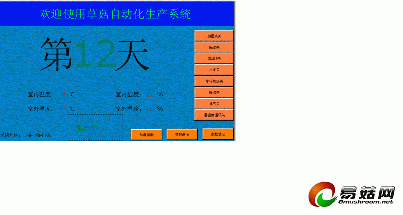 本系统包括台达PLC,台达触摸屏,温湿度传感器,加温加湿设备,换气设备等。控制系统是基于草菇生长周期所开发的自动化系统,完全满足草菇的生长需要。播种后设定生产参数,即可自动生产,不需人为的干预。(可实现联网