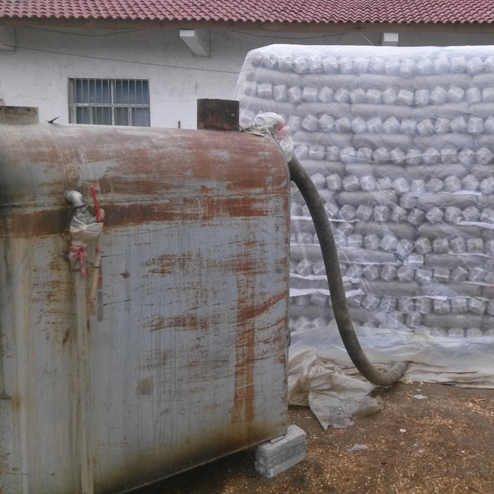 十二、待垛内下部温度达到100℃(在菌垛下部第四层处量)后,把垛底边压实,出水口一直保留。锅炉再烧8-10个小时,即达到灭菌的目的。