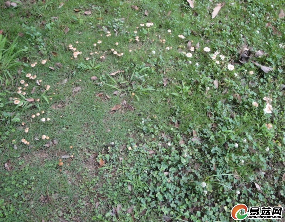 雨过天晴,校园的草坪上呈现出不少小蘑菇(小皮伞居多),还有蘑菇圈,真是令人高兴,之前仅在书本和电视上见过蘑菇圈的。不过这个蘑菇圈还是有点小,直径在2m左右,且只能算是个大半的圆。这里的蘑菇应该是“硬柄小皮伞”