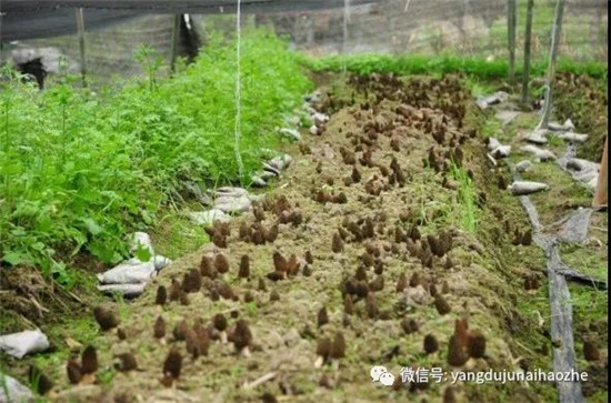 覆膜技术的另一个值得注意的问题是覆膜之后菌床上的通风问题。覆膜给菌床营造了一个相对封闭的环境,地膜两边按照50 cm间隔压块,正常情况不会发生明显地缺氧问题。因此是可以不用在地膜上打孔的。但若播种时土壤含水量偏大,播种后长时间连阴雨天气等造成菌床湿度偏高时,容易导致菌丝发菌差或菌种不萌发,菌丝纤细等情况,此时可先不覆膜或进行揭膜透气等操作进行调整,待菌丝活力恢复、土壤含水量合适时再如前技术流程进行覆膜操作。